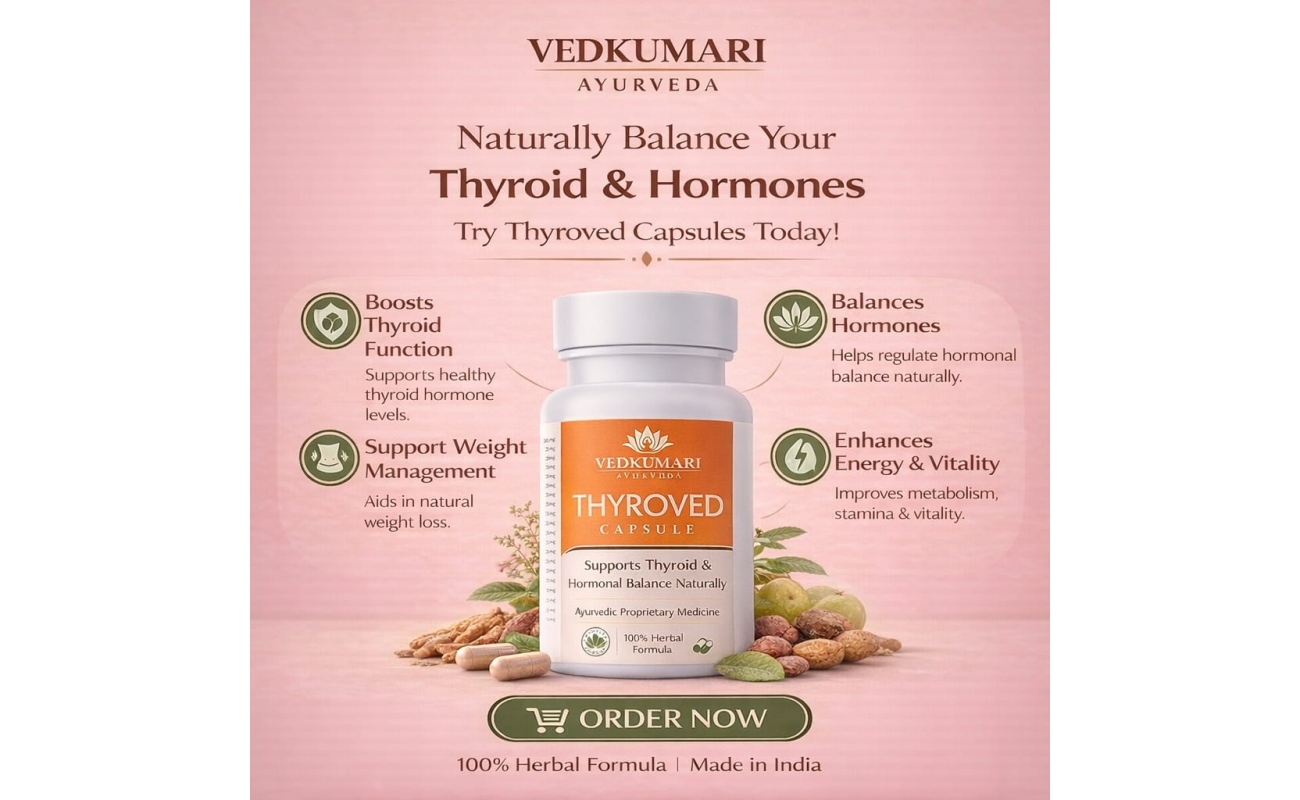 Thyroved is scientifically formulated with potent Ayurvedic herbs like Kanchnar Guggulu, Ashwagandha, and Varun to support the optimal functioning of the Pituitary Gland & Thyroid gland. Designed for those seeking a natural path to hormonal harmony.